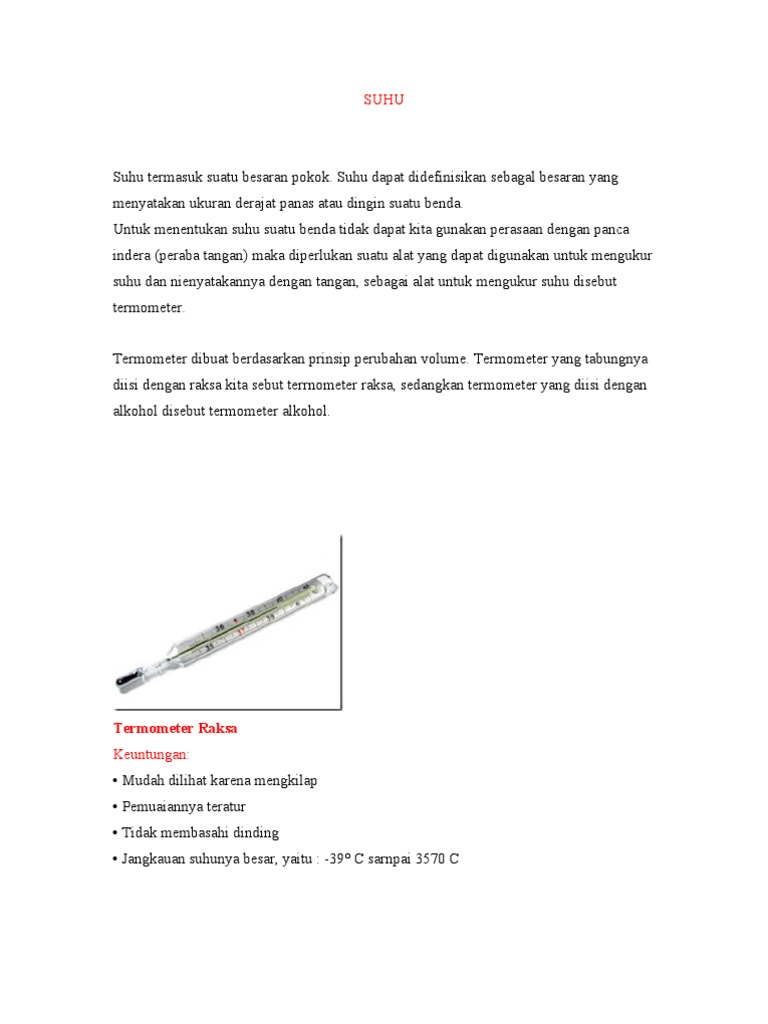 Nah, dalam ilmu pengetahuan alam untuk menyatakan tingkat panas dinginnya suatu keadaan digunakan suatu besaran yang disebut suhu atau temperatur.
