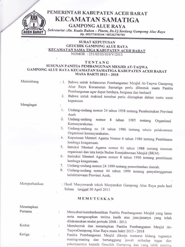 Sk kades tentang panitia pembangunan masjid. Maybe you would like to learn more about one of these? Check spelling or type a new query. We did not find results for: