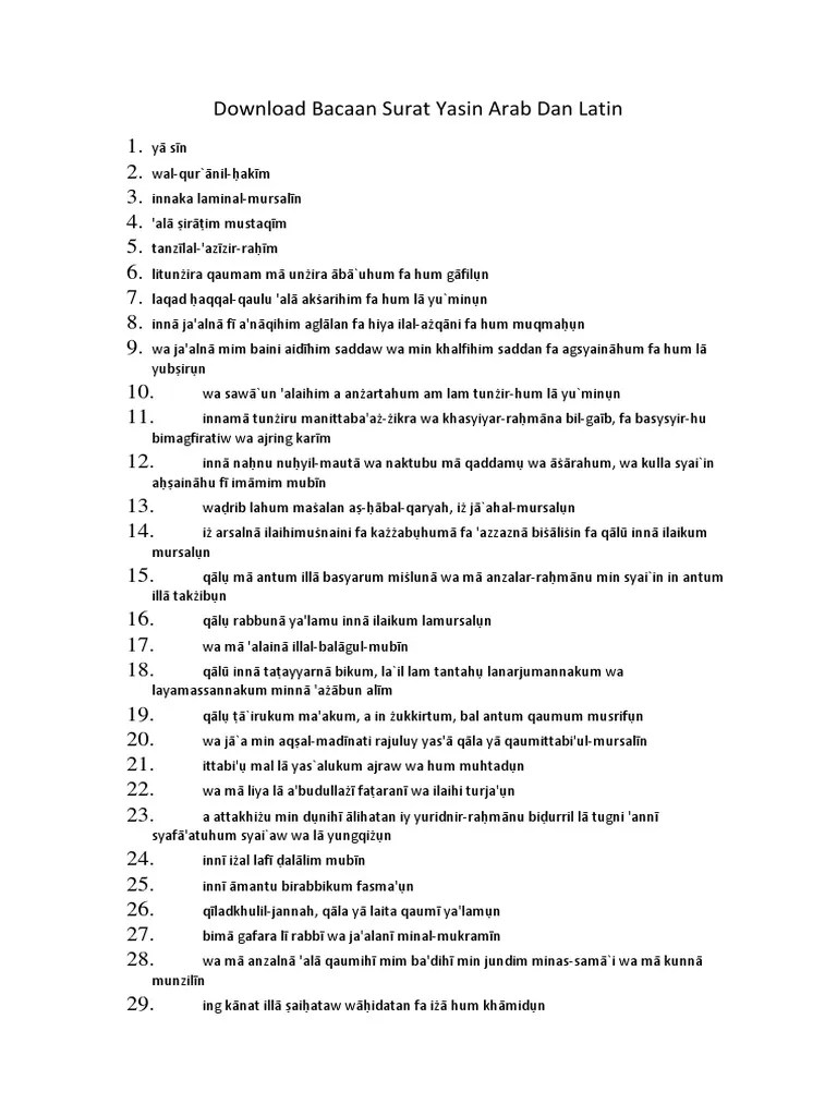 Surat Yasin Tulisan Latin Saja - Download Bacaan Teks Surat Yasin Dan Tahlil Arab Dan Terjemahannya - Surat yasin tulisan latin saja.
